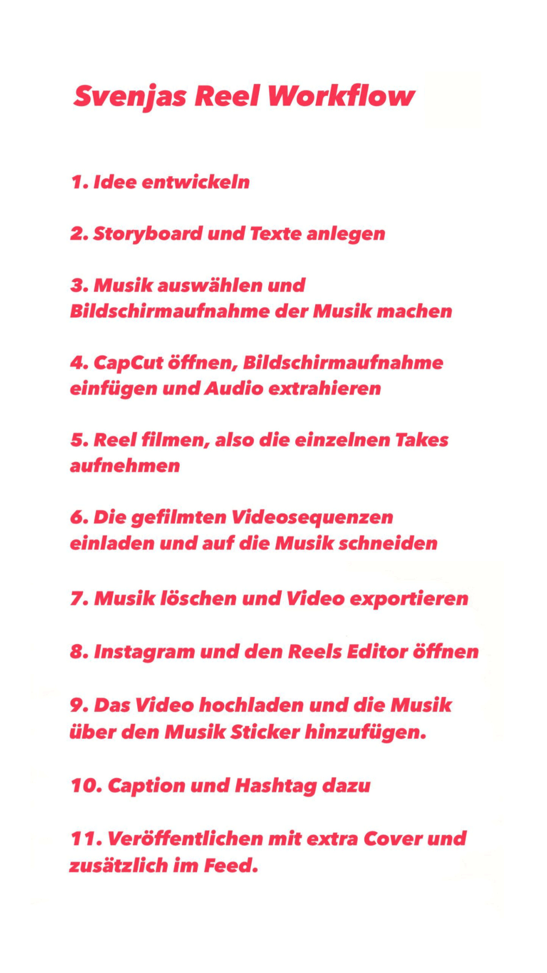 Am besten machst Du gleich einen Screenshot oder speicherst dir das Bild unten ab, dann hast Du den Workflow in Deinen Fotos gespeichert und griffbereit für Deinen Social Media Content: